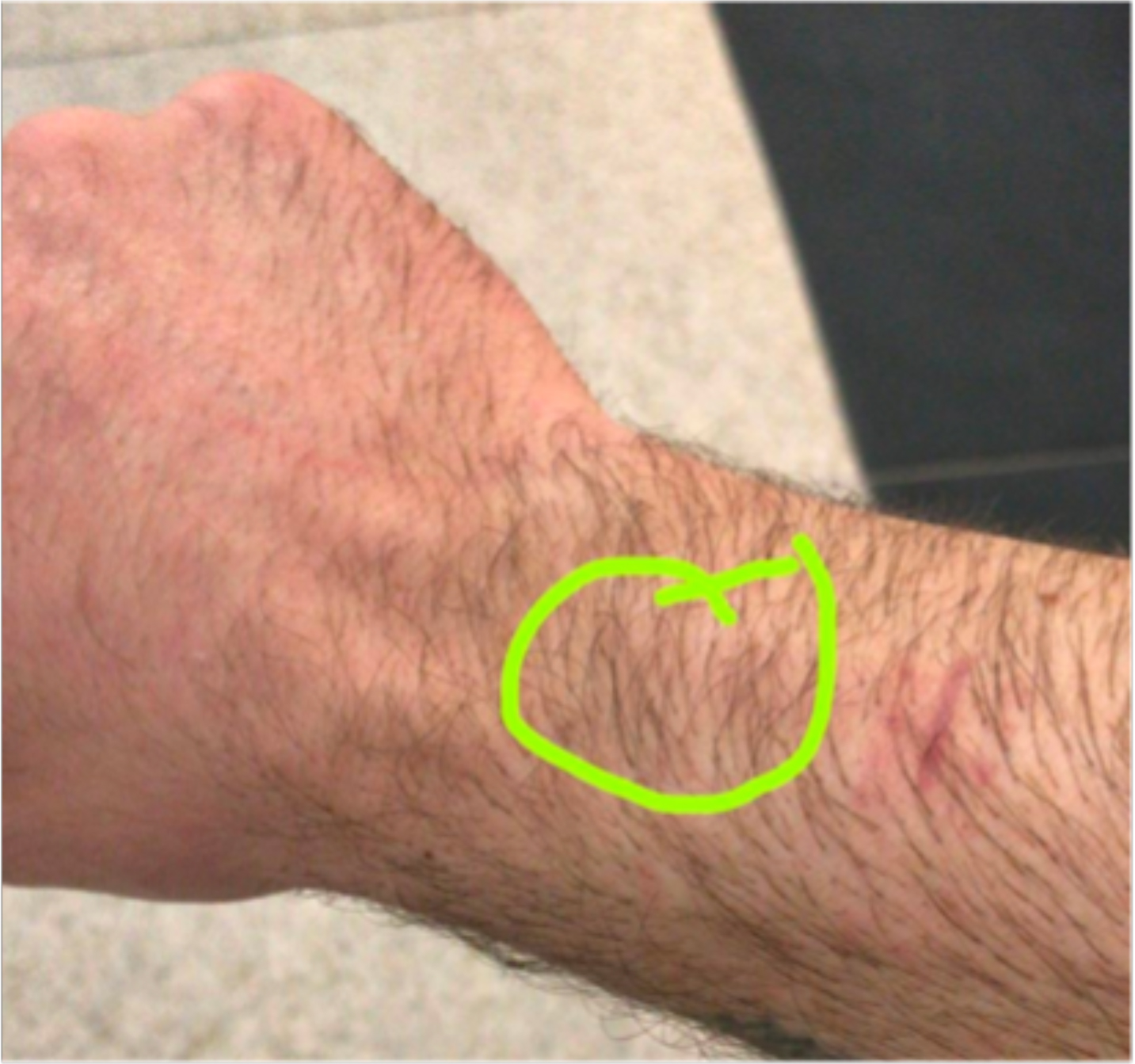 We recommend placing the implant about 2 cm above the wrist on the inner forearm.