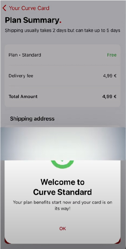 Your virtual Curve credit card is now active.