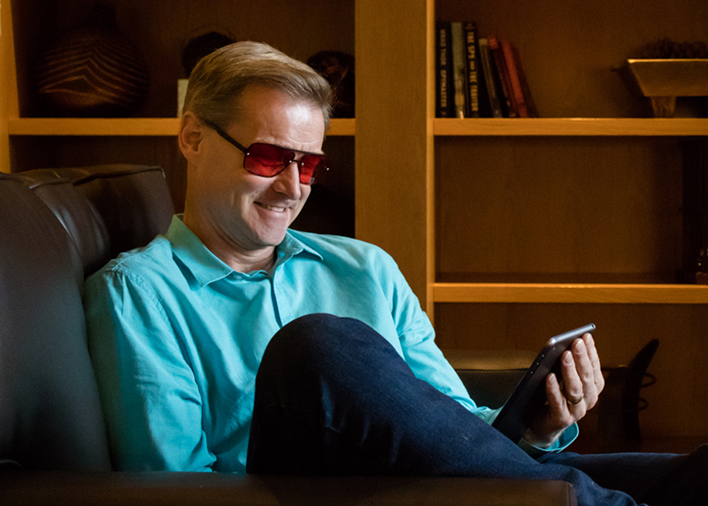 If blue light in the evening is unavoidable, blue light filter glasses block the harmful light and allow melatonin to be produced.