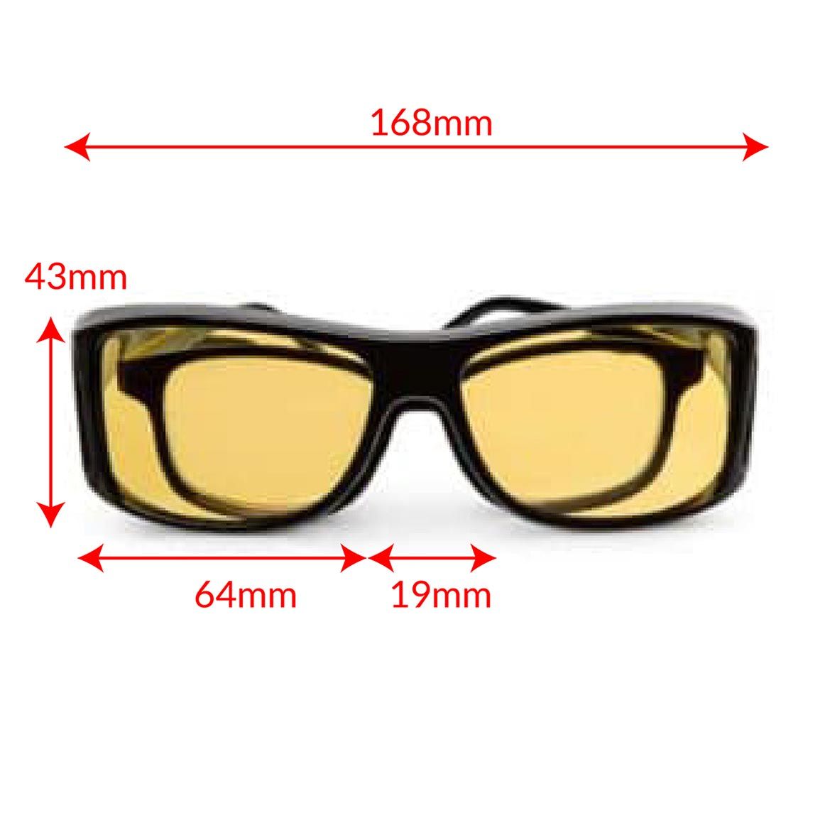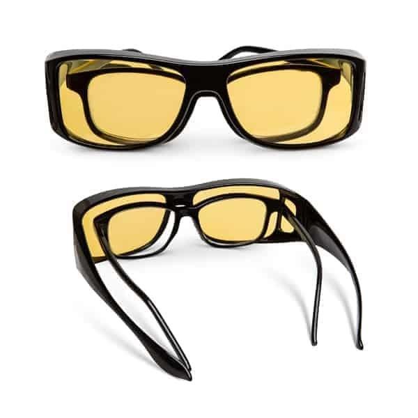 These fitover glasses were designed as an attachment with maximum coverage for most regular glasses. Lightweight waterproof frame made of polycarbonate. The patented TrueDark lenses are made of scratch-resistant polycarbonate and are fully tinted. The fully tinted lenses do not lose their effectiveness even when scratched and additionally protect against UV light.