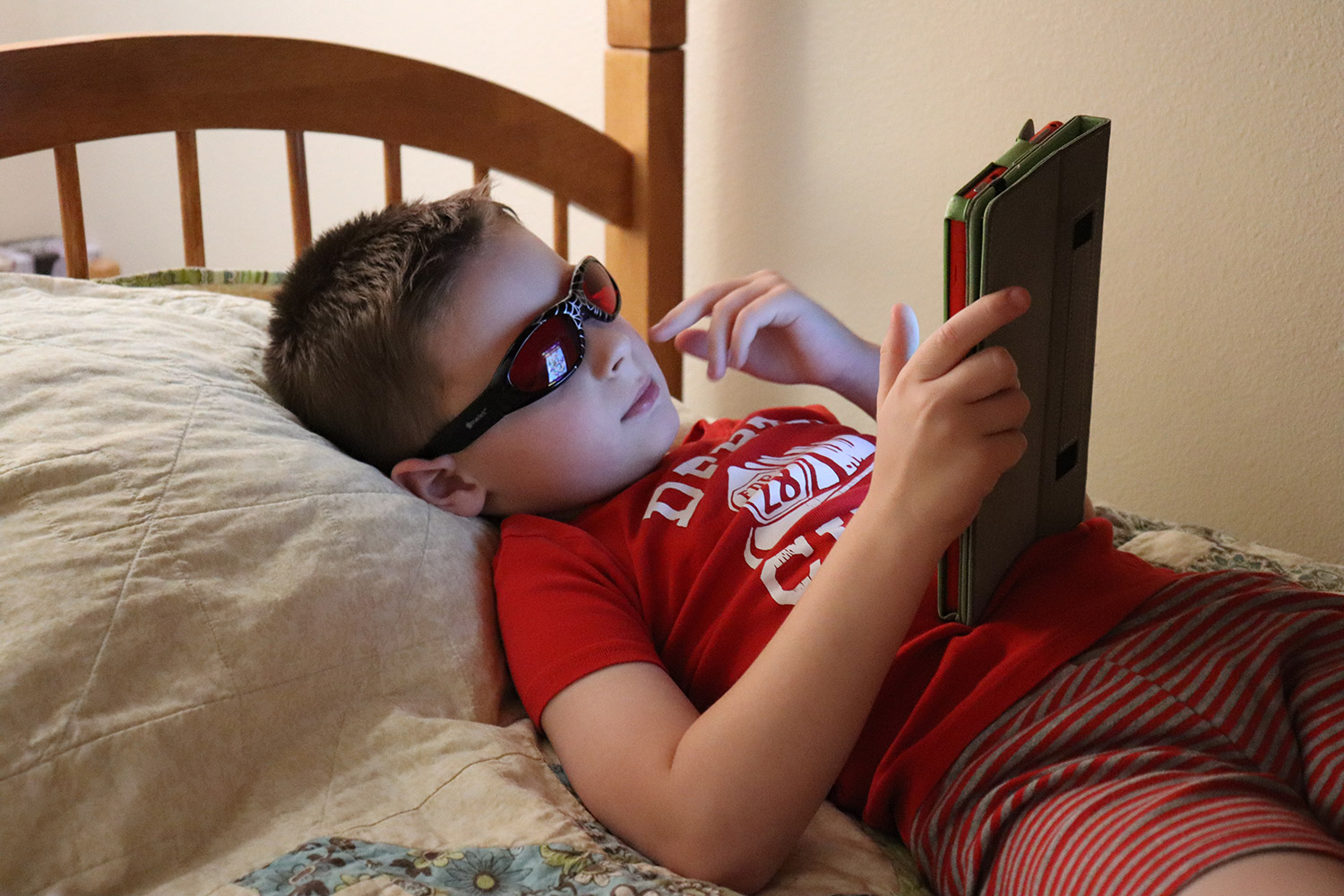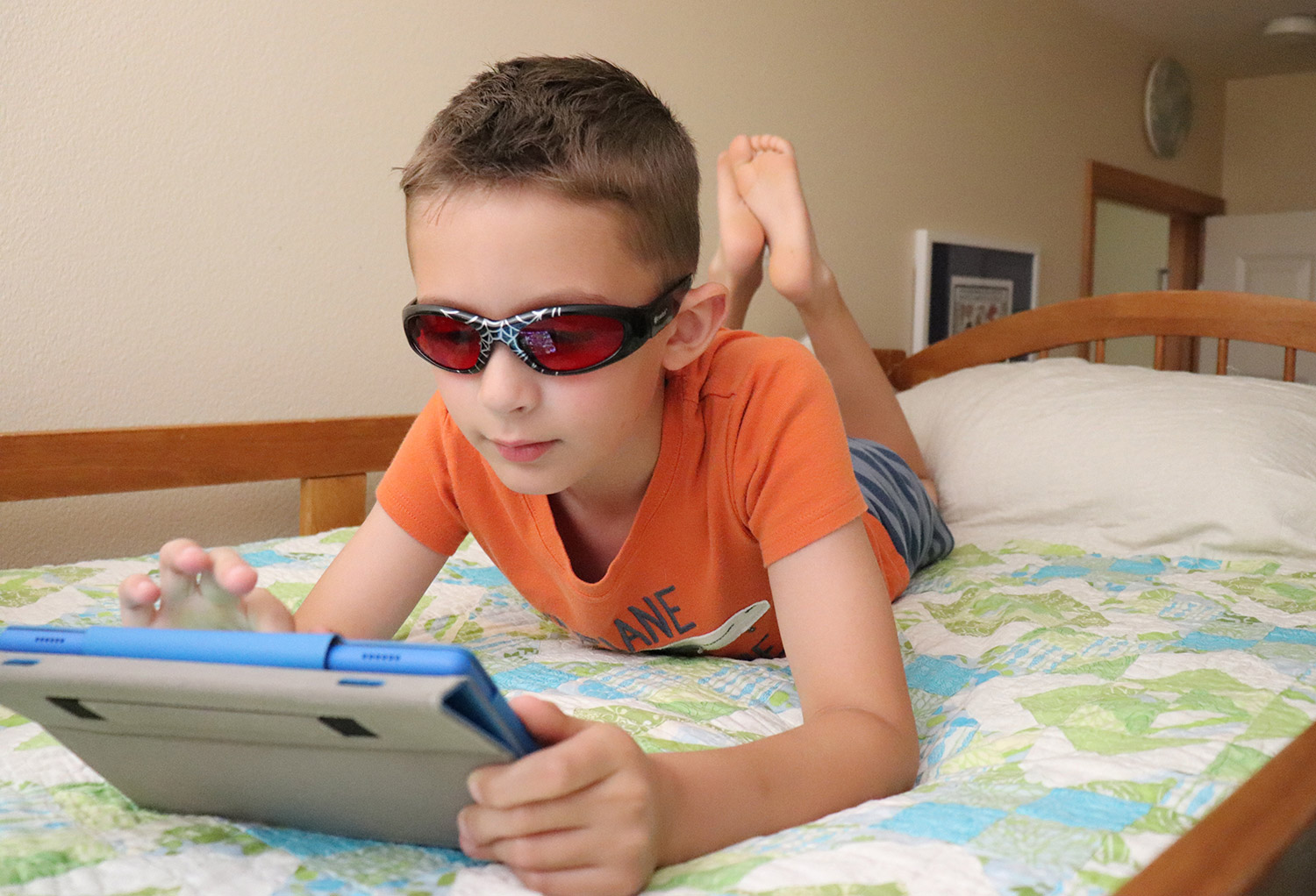 The children's Twilight glasses are also excellent for getting children with earlier bedtimes to sleep when it’s still light out. TrueDark® is designed to be worn 30 minutes to 2 hours before going to bed or sleeping. 98% of blue, green, and violet wavelengths are blocked. Choose TrueDark® Twilights if you are still active at home before bedtime (so you can see the dog or cat instead of tripping over them).