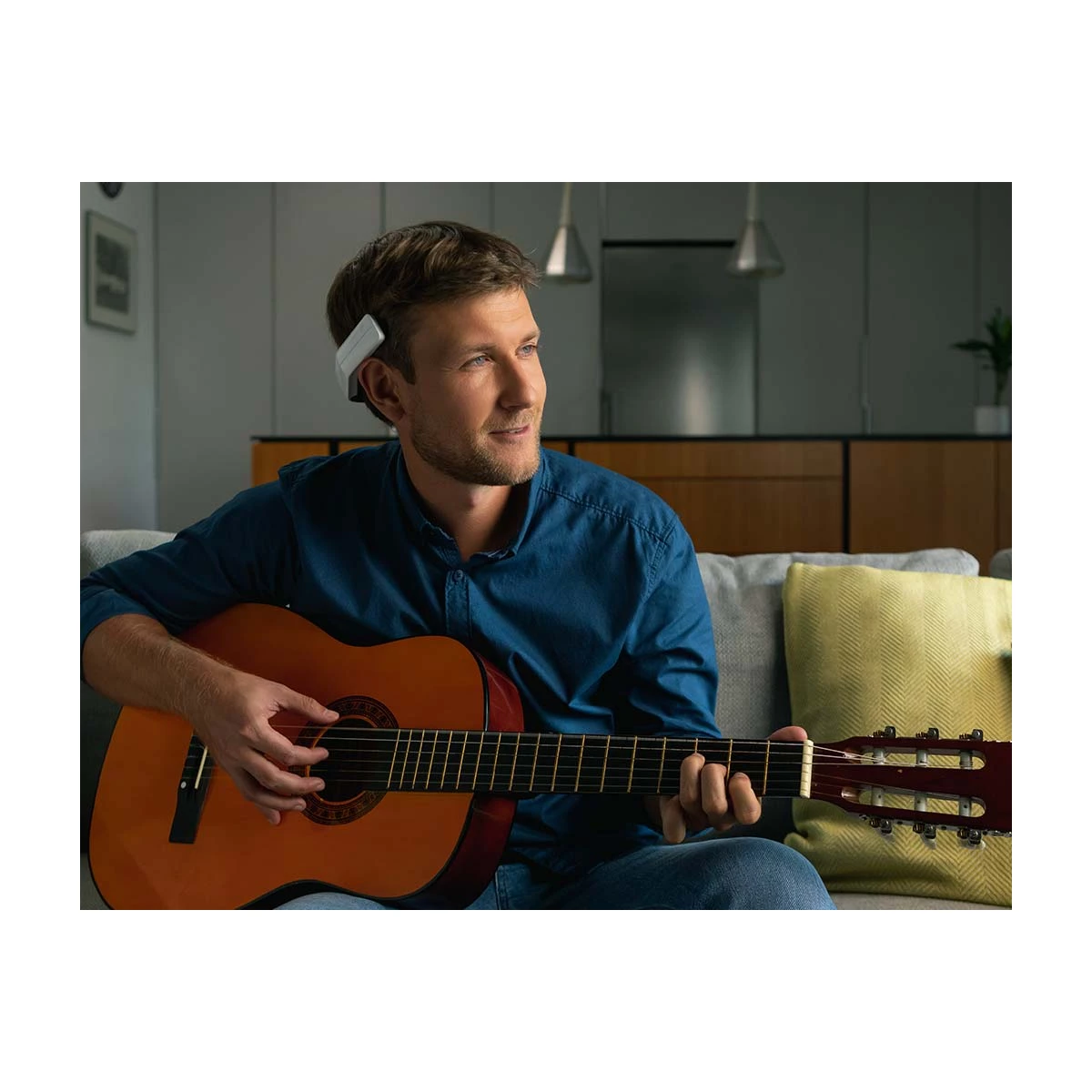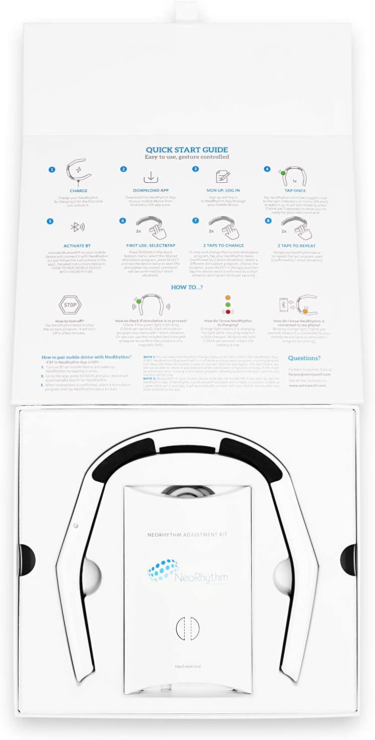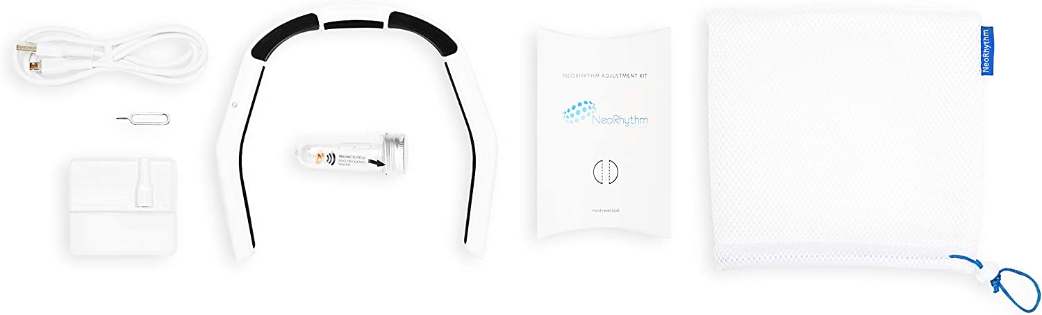 These magnetic fields stimulate specific areas of the brain, helping the user to concentrate better on complex tasks. The positioning of the device is crucial for achieving the desired effect. The NeoRhytm headset can also help with chronic and acute pain. The settings for the different training modes are controlled via a smartphone, which is paired with the NeoRhythym headset.