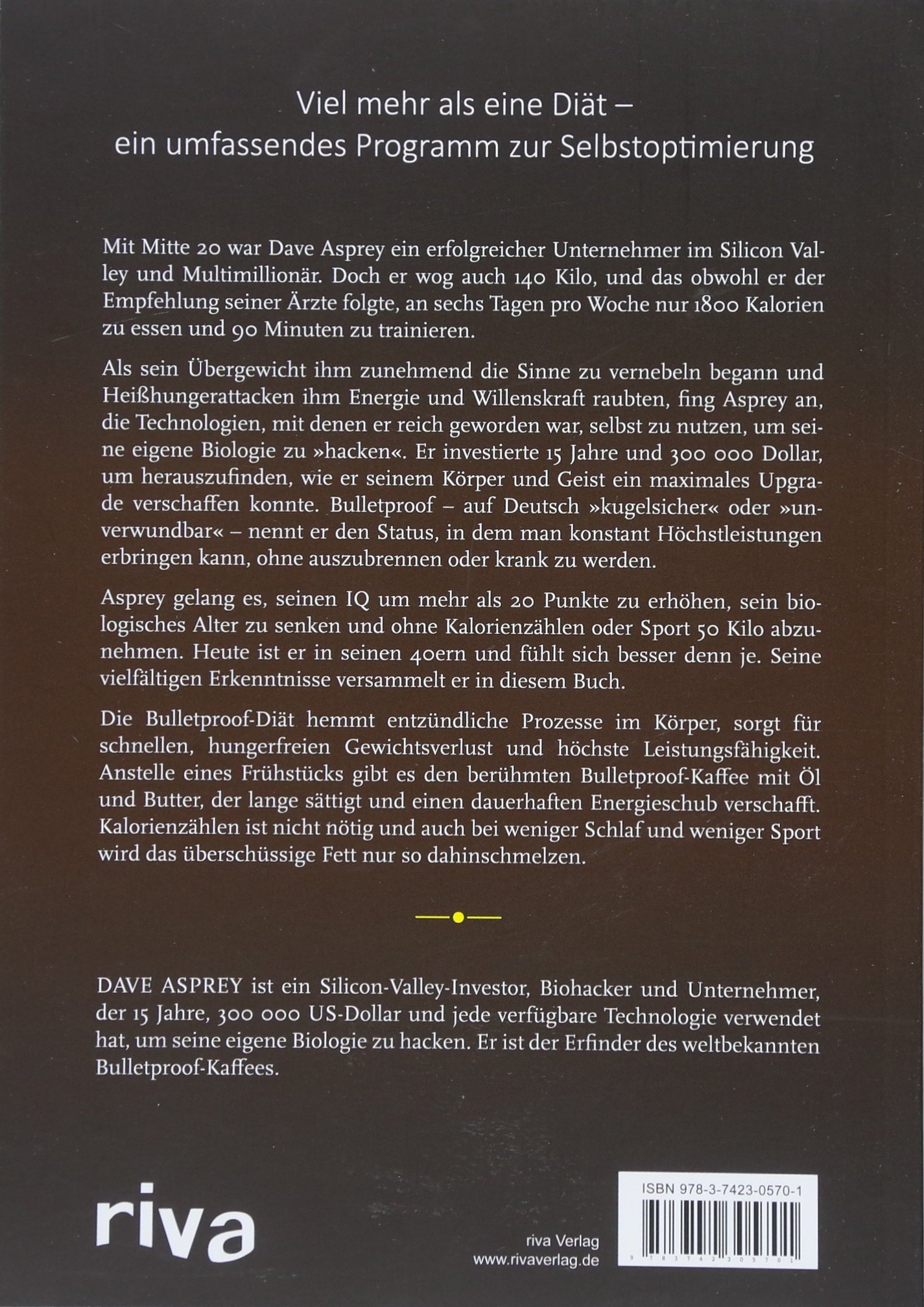 The biohacker uses a wide range of methods – from ancient traditions, routines, and rituals to current research and modern technology. In the author's self-experiments, research meets practice when butter ends up in coffee, the body in an ice bath, and at least one new tech gadget joins his collection each month.