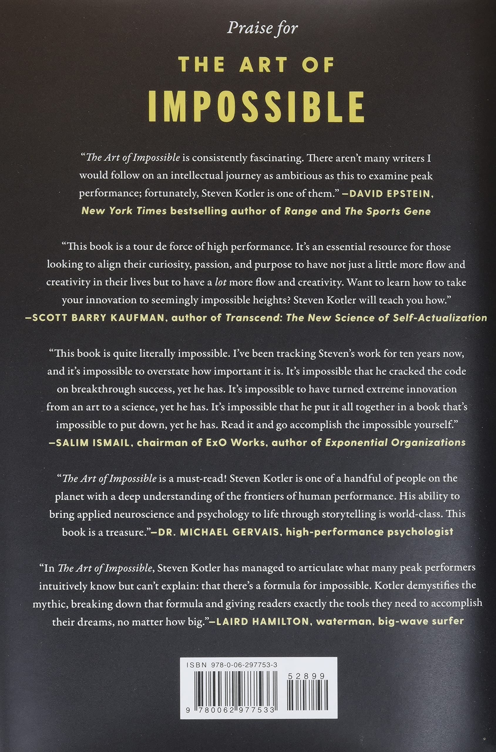 "Bestselling author and performance expert Steven Kotler breaks down the processes elite athletes use to achieve seemingly impossible goals, and teaches us how we too can do what we once thought unattainable, turning the art of the impossible into an opportunity for anyone who wants to level up."
