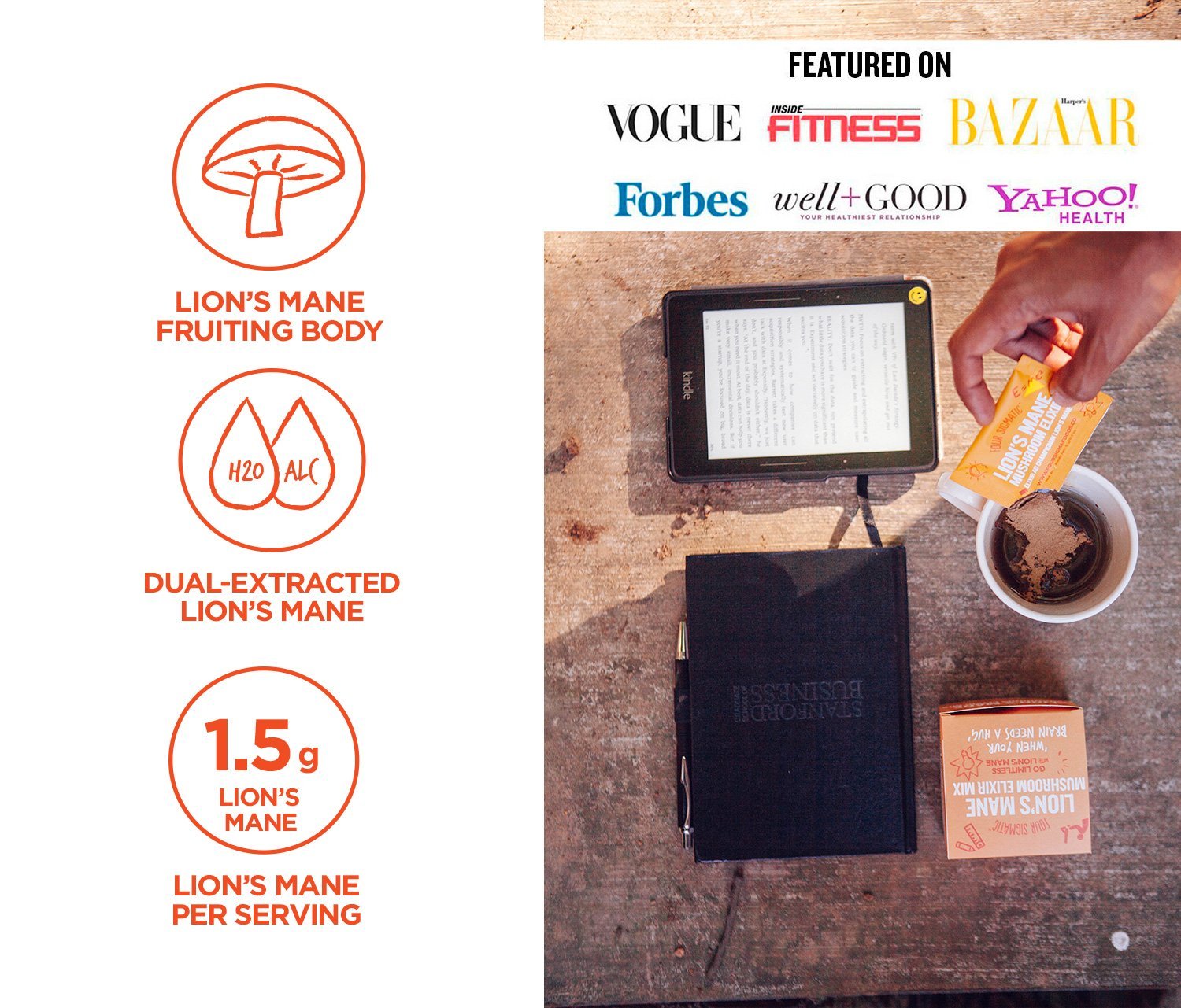 Lion's Mane (Hericium erinaceus) is the ultimate upgrade for the brain as a nootropic. Completely without negative side effects, Lion's Mane can noticeably enhance concentration, creativity, and productivity.