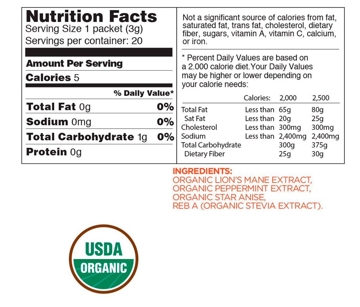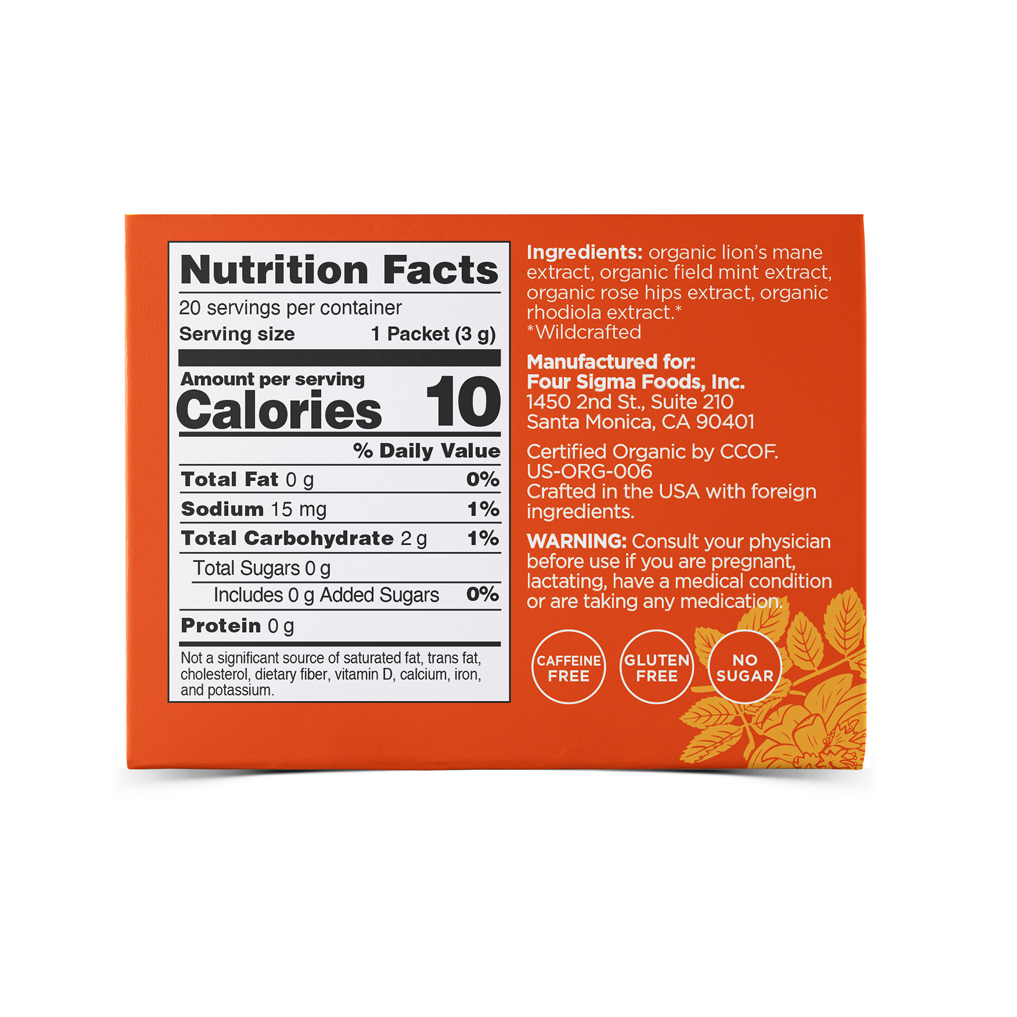 - One pack of Four Sigma Lion's Mane contains 20 sachets, each with 1.5g of double-extracted Lion's Mane
