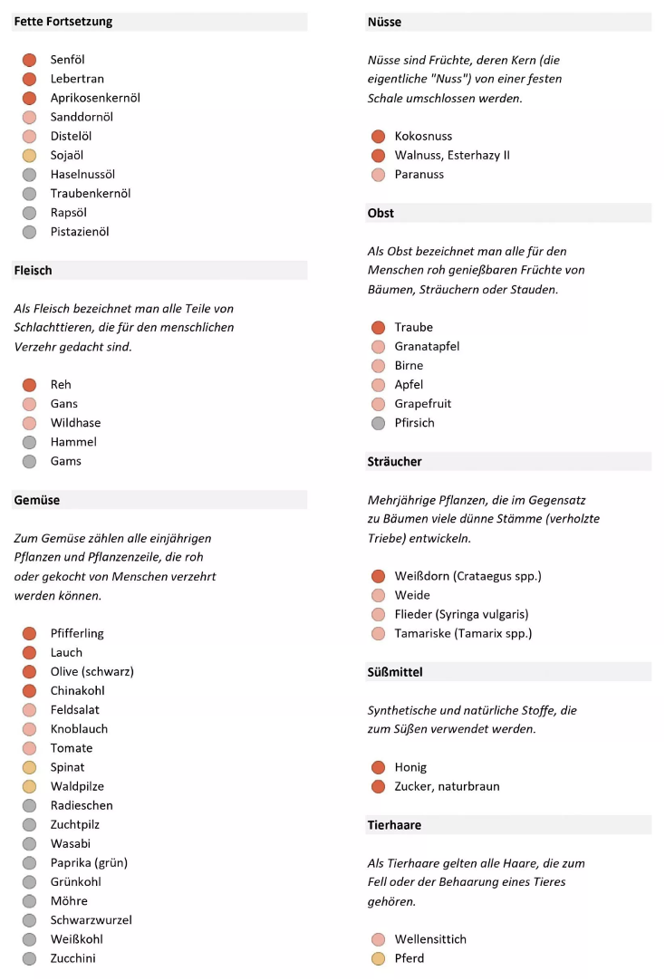 Gluten (wheat-rye gliadin), histamine (from food), dust, yeast, goat’s milk, egg white, yolk, soy, ostrich egg, quail egg and more.