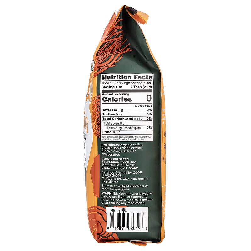One pack of Four Sigmatic Ground Mushroom Coffee contains 340 grams, enough for 16 servings.