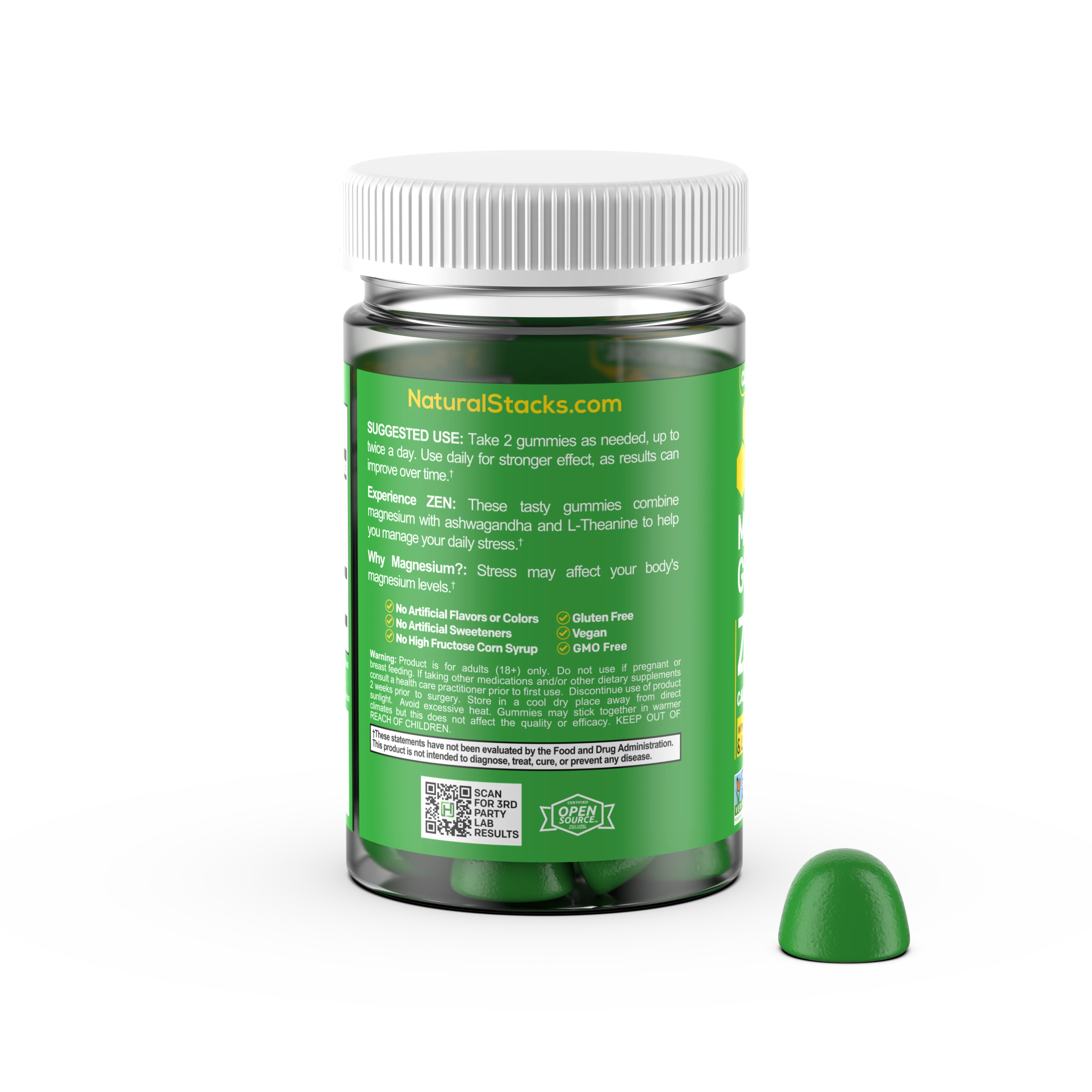 The Zen Magnesium Gummies from Natural Stacks are free from artificial colors and flavors and are made from high-quality, natural ingredients. They contain no gluten, are non-GMO, and are suitable for a vegetarian diet.