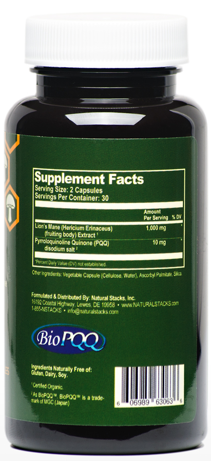 This natural formula combines organic lion’s mane mushroom extract with BioPQQ™ to ensure optimal brain cell health.
