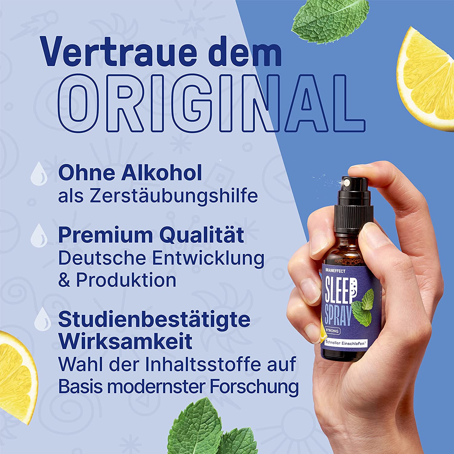 SLEEP SPRAY STRONG is easy to use and dose – even when you're in a hurry. Just spray & drift off!
